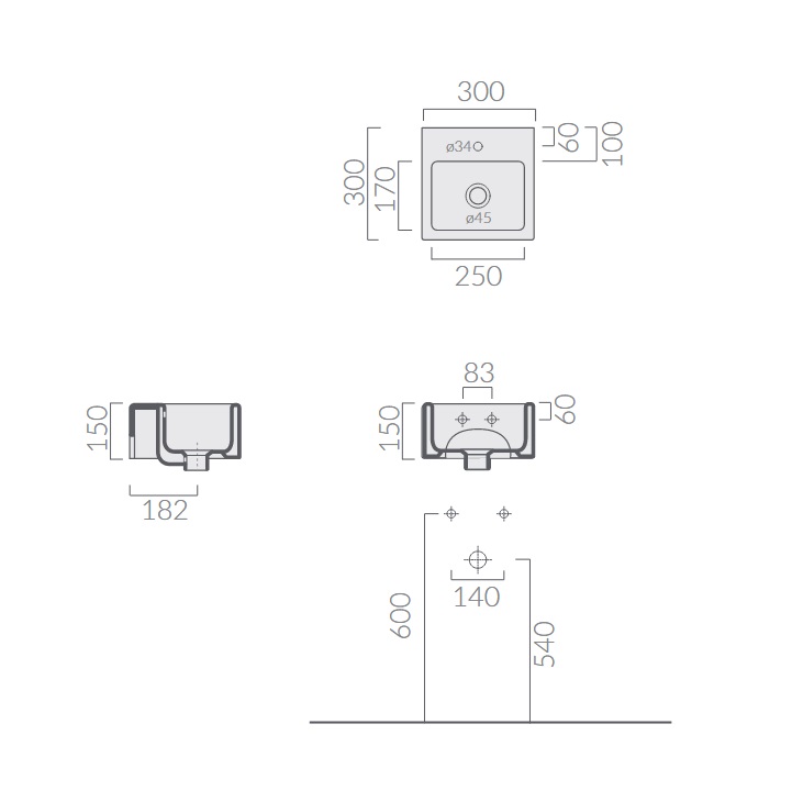 Galassia PLUS DESIGN Umywalka ścienna lub nablatowa 30x30 cm Biały 6033