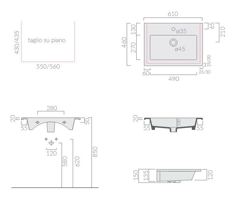Umywalka do montażu ściennego lub wpuszczana w blat
