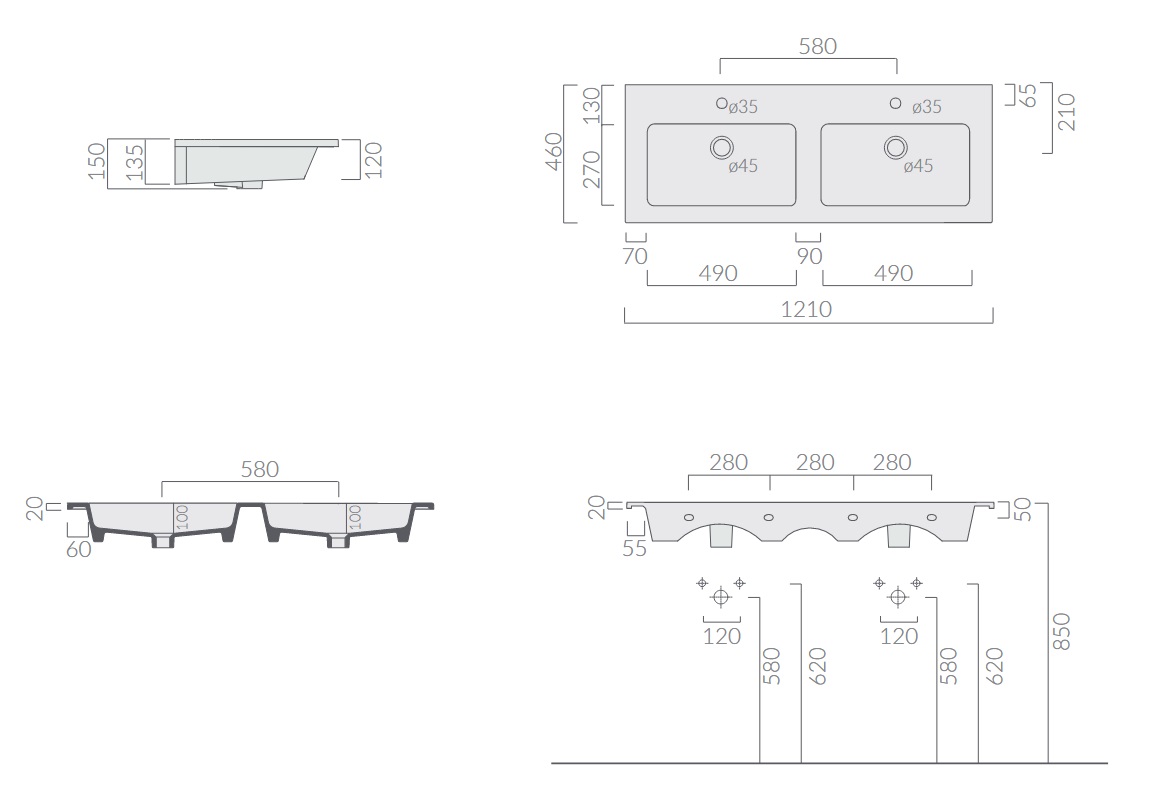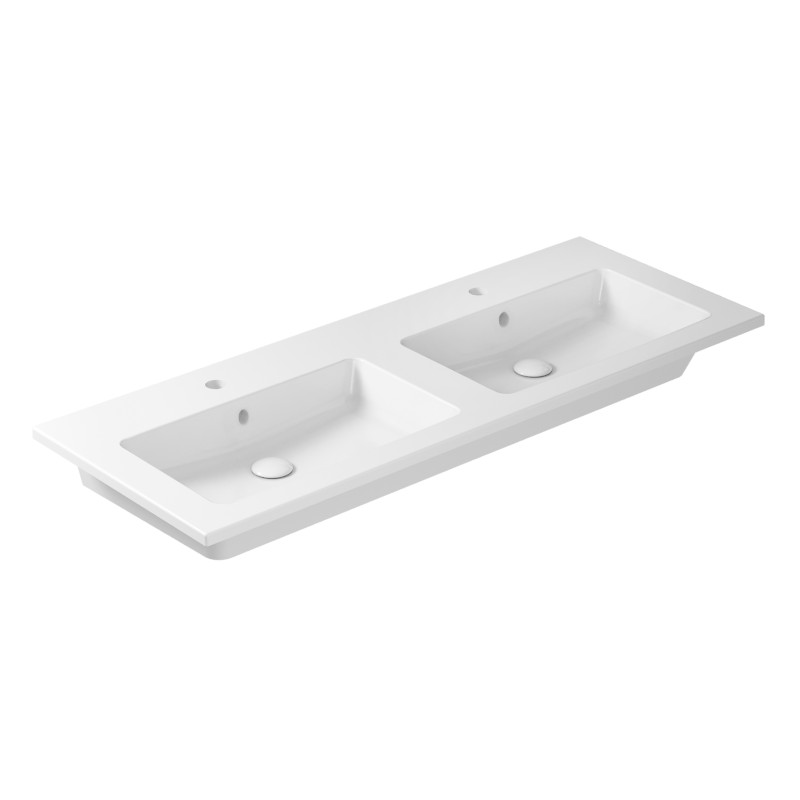Galassia Eden Umywalka 2-komorowa z 2 otworami na baterię ścienna lub wpuszczana w blat 121x46 cm Biały 7227