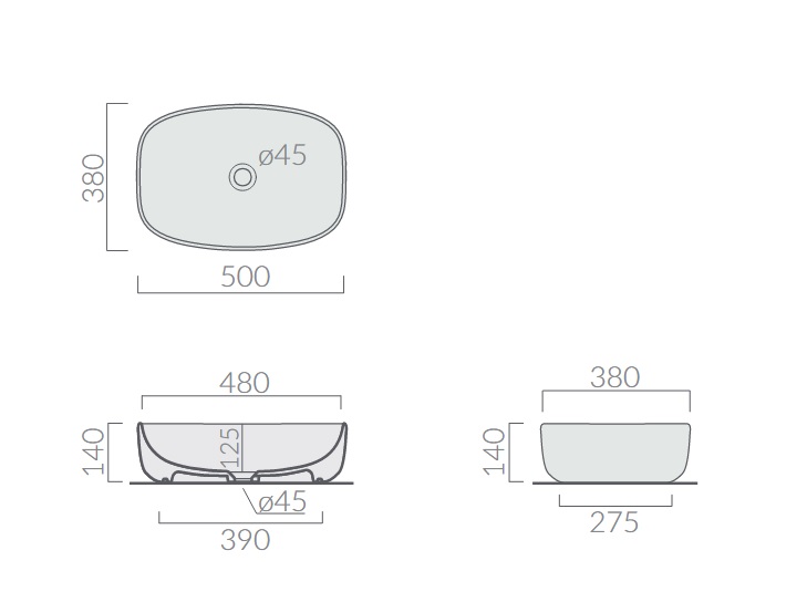 Galassia DREAM Umywalka stawiana na blat 50x38 cm Szary mat 7301GM