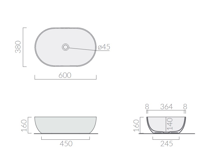 Galassia DREAM Umywalka stawiana na blat 60x38 cm Szary mat 7308GM