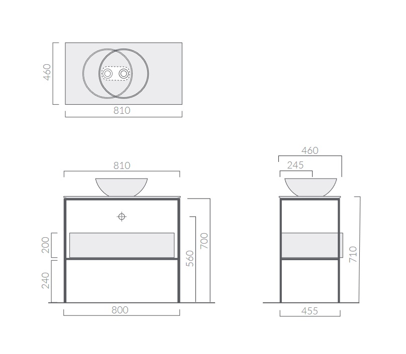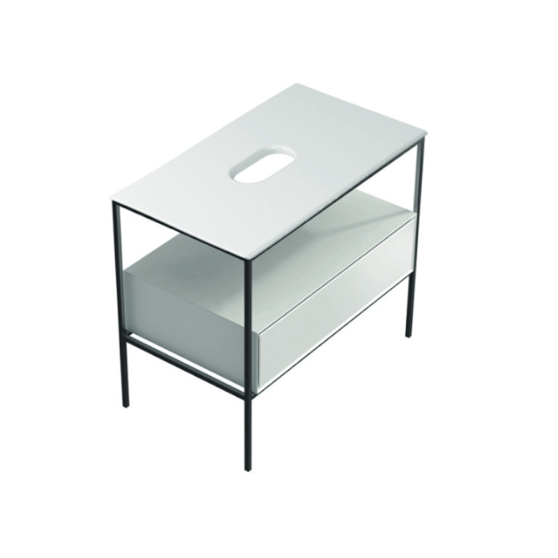 Galassia Zestaw Stelaż podumywalkowy stojący Czarny + Blat ceramiczny Biały + Półka z szufladą Biały 8910 + 2051 + 8919BM