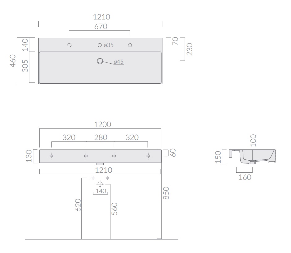 Galassia MEG11 PRO Umywalka ścienna/stawiana na blat 121x46 cm Biały mat 8938MT