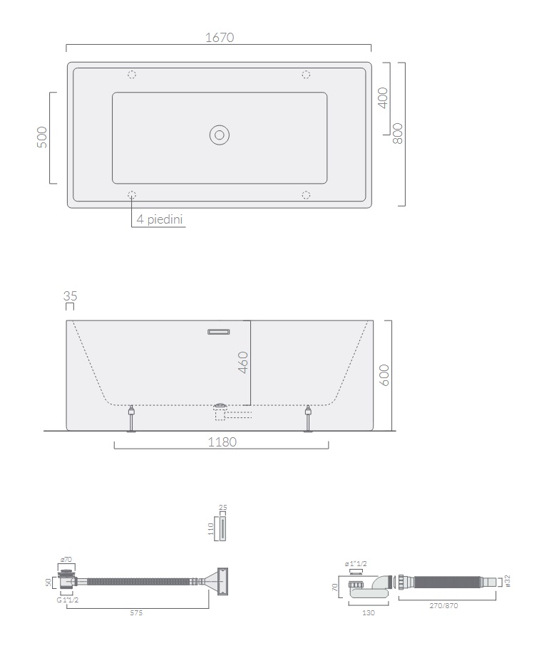 Cena dotyczy wanny z systemem przelewowo-odpływowym.