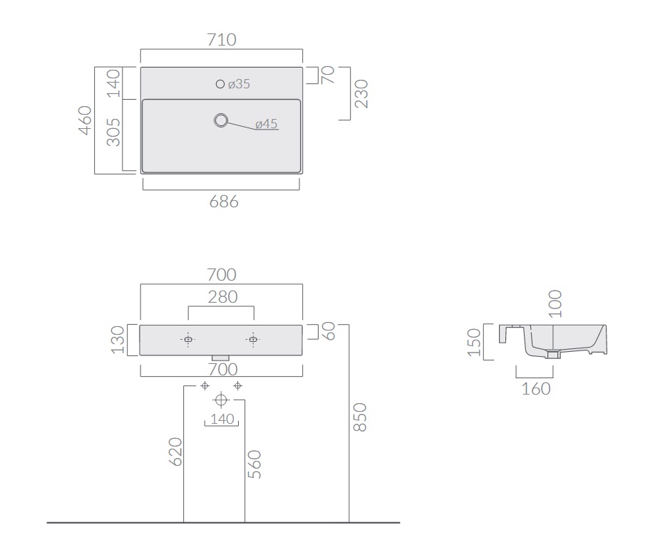 Galassia MEG11 PRO Umywalka ścienna/stawiana na blat 71x46 cm Biały mat 8968MT