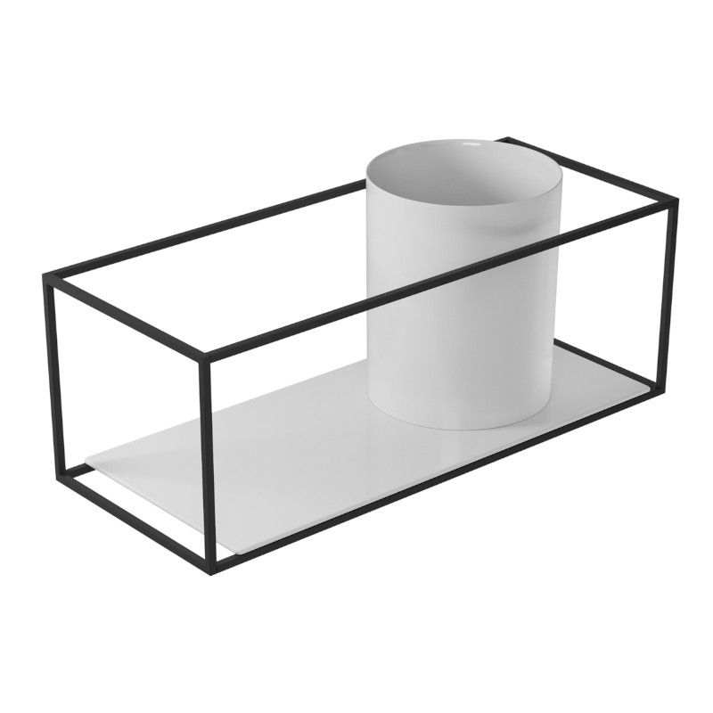 Galassia Zestaw Stelaż podumywalkowy ścienny Czarny + Umywalka stawiana na blat Biały  Blat ceramiczny Biały 2078NE + 7305 + 2053
