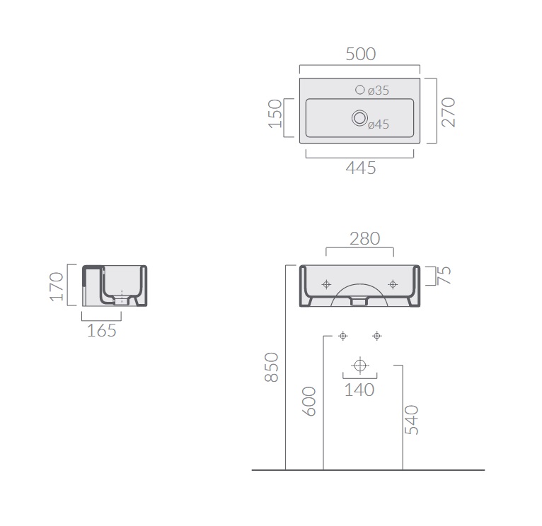 Galassia PLUS DESIGN Umywalka ścienna lub nablatowa 50x20 cm Biały mat 6031M