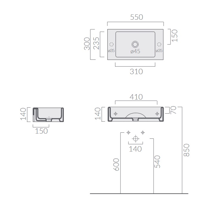Galassia PLUS DESIGN Umywalka ścienna 55x35 cm Biały 6035S