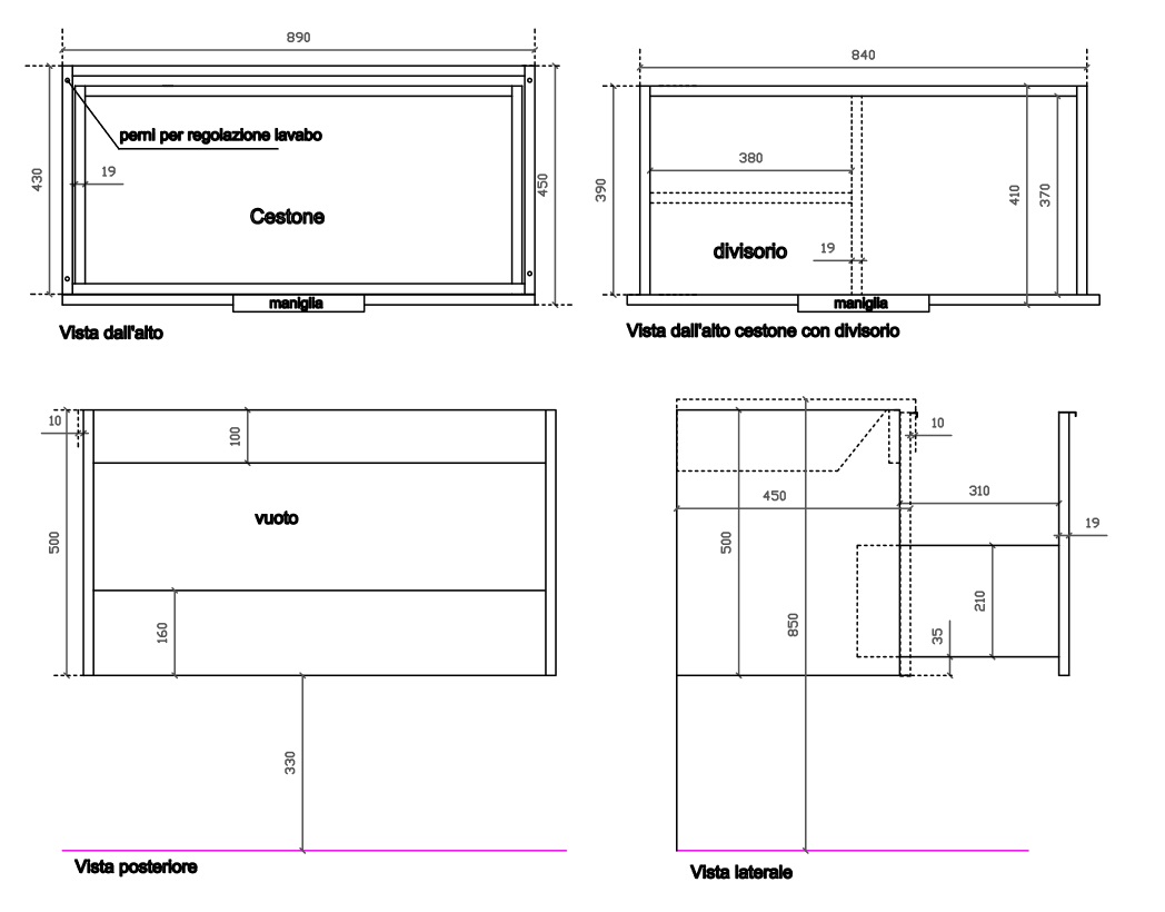 Galassia EDEN Szafka wisząca pod umywalkę 89x45 cm Wiąz naturalny 7243ON