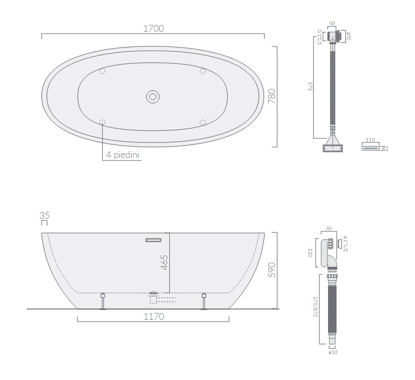 Galassia FLOW Wanna wolnostojąca 170x78 cm Biały mat 7320MT