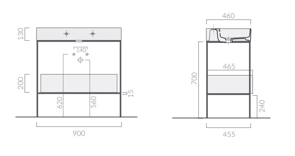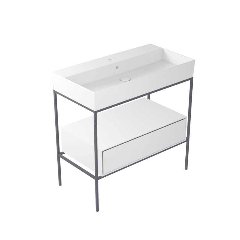 Galassia Zestaw Stelaż pod umywalkowy Czarny + Szafka z szufladą Biały + Umywalka Biały + Półka ceramiczna Biały 8916BM + 8913 + 8967 + 2057