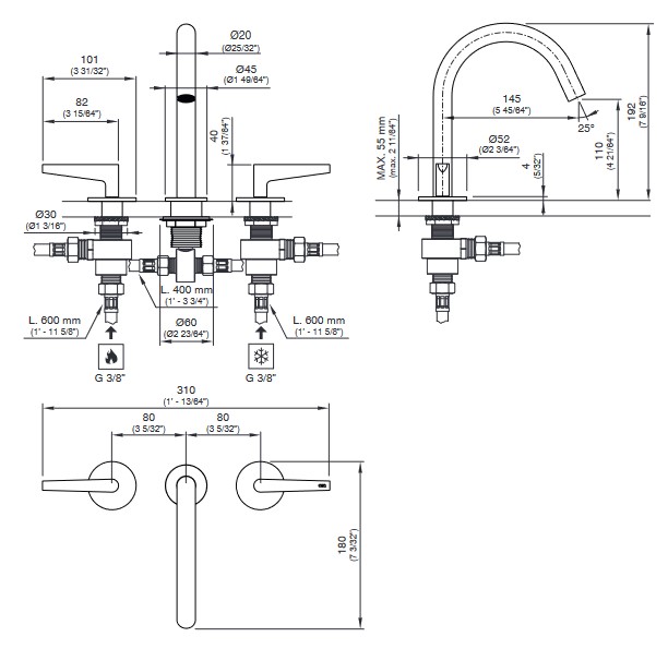 CEA Flag Bateria umywalkowa 3-otworowa z obrotową wylewką Satin Stainless Steel FLG03S