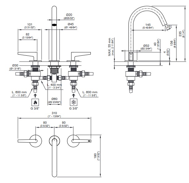 CEA Flag Bateria umywalkowa 3-otworowa z obrotową wylewką Satin Stainless Steel FLG04S