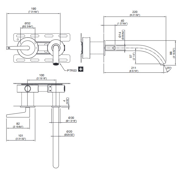 CEA Flag Bateria umywalkowa ścienna z wylewką 22 cm element zewnętrzny Satin Stainless Steel FLG07S