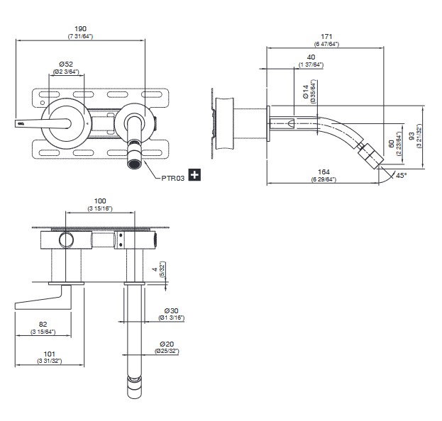 CEA Flag Bateria bidetowa ścienna z regulowaną wylewką 17 cm element zewnętrzny Satin Stainless Steel FLG08S