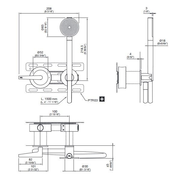 CEA Flag Bateria wannowa/prysznicowa ścienna ze słuchawką i wężem element zewnętrzny Satin Stainless Steel FLG22YWS