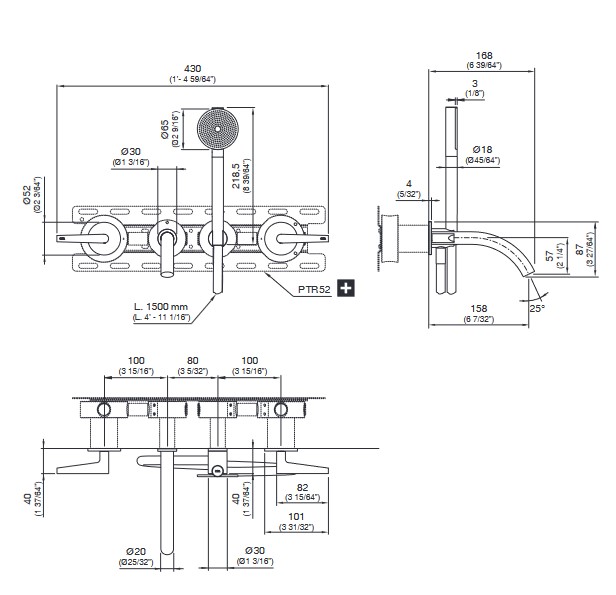 CEA Flag Bateria wannowa/prysznicowa ścienna z wylewką, słuchawką i wężem element zewnętrzny Satin Stainless Steel FLG41YWS