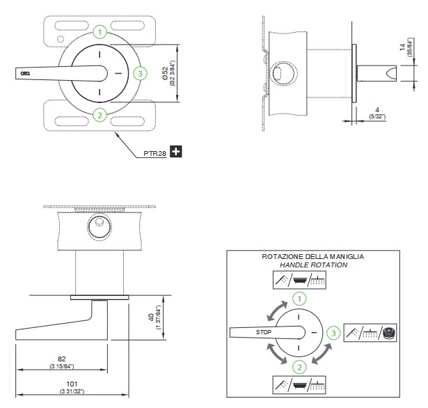 CEA Flag Przełącznik ścienny 2/3-drożny element zewnętrzny Satin Stainless Steel DEV16S