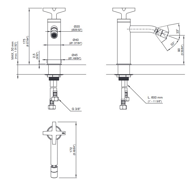 CEA Cross Bateria bidetowa jednootworowa z regulowaną wylewką Satin Stainless Steel CRX42S