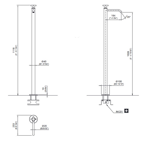 CEA Cross Bateria umywalkowa wolnostojąca element zewnętrzny Satin Stainless Steel CRX47S