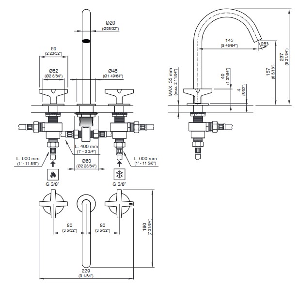CEA Cross Bateria umywalkowa 3-otworowa z obrotową wylewką Satin Stainless Steel CRX06S