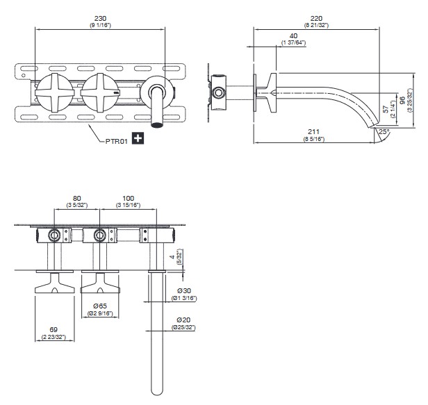 CEA Cross Bateria umywalkowa ścienna z wylewką 22 cm element zewnętrzny Satin Stainless Steel CRX13S