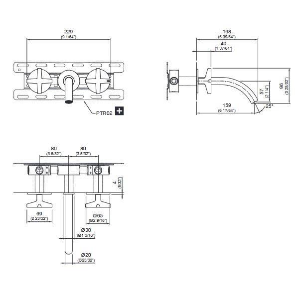 CEA Cross Bateria umywalkowa ścienna z wylewką 17 cm element zewnętrzny Satin Stainless Steel CRX16S