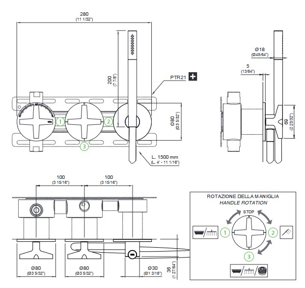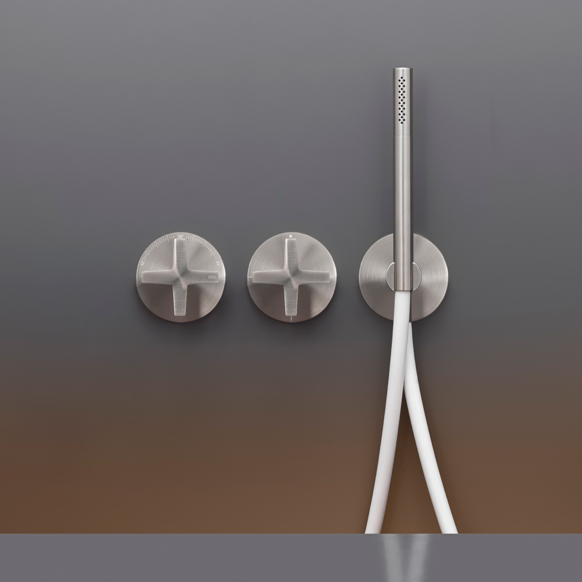 CEA Cross Bateria wannowa/prysznicowa ścienna termostatyczna z przełącznikiem 2/3-drożnym, słuchawką i wężem element zewnętrzny Satin Stainless Steel CRX20WS