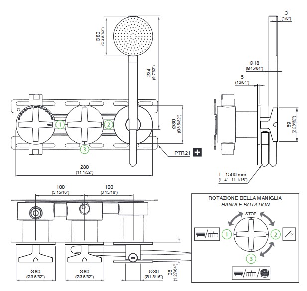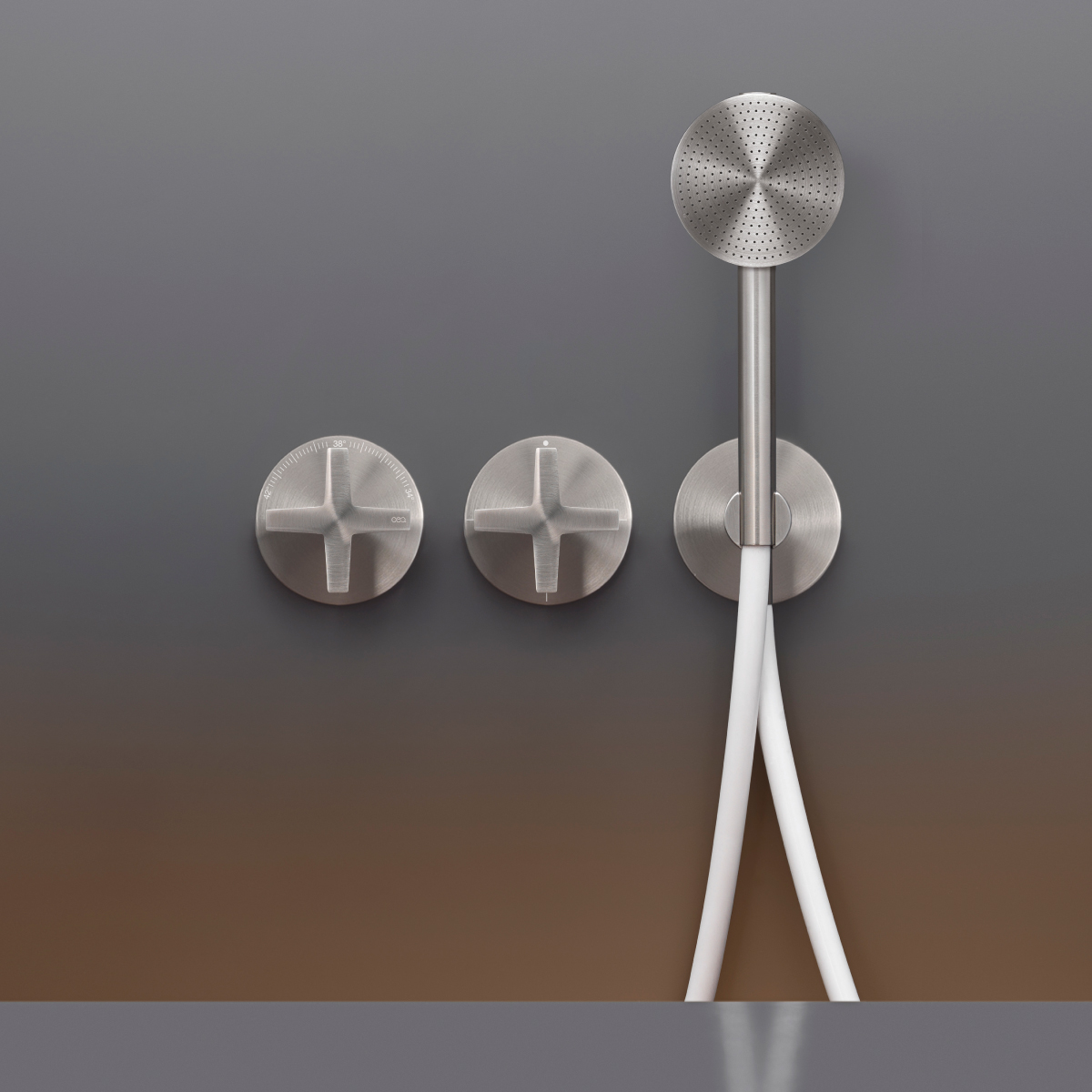 CEA Cross Bateria wannowa/prysznicowa ścienna termostatyczna z przełącznikiem 2/3-drożnym, słuchawką i wężem element zewnętrzny Satin Stainless Steel CRX20HWS