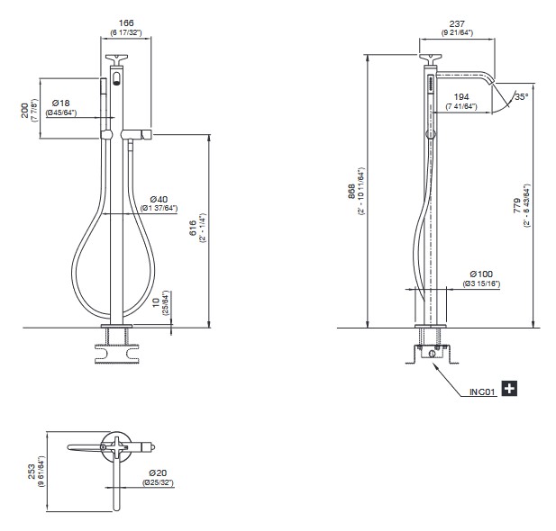 CEA Cross Bateria wannowa wolnostojąca ze słuchawką i wężem element zewnętrzny Satin Stainless Steel CRX27WS