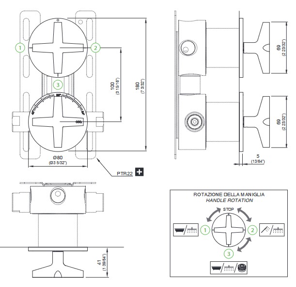 CEA Cross Bateria prysznicowa ścienna termostatyczna z przełącznikiem 2/3-drożnym element zewnętrzny Satin Stainless Steel CRX50S
