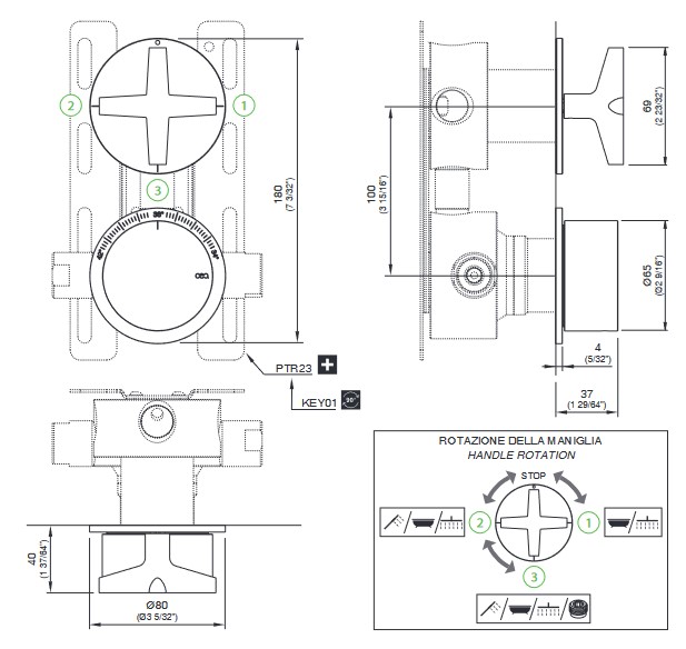 CEA Cross Bateria prysznicowa ścienna termostatyczna z przełącznikiem 2/3-drożnym element zewnętrzny Satin Stainless Steel CRX51S