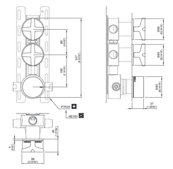 CEA Cross Bateria prysznicowa ścienna termostatyczna z 2 zaworami odcinającymi element zewnętrzny Satin Stainless Steel CRX53S