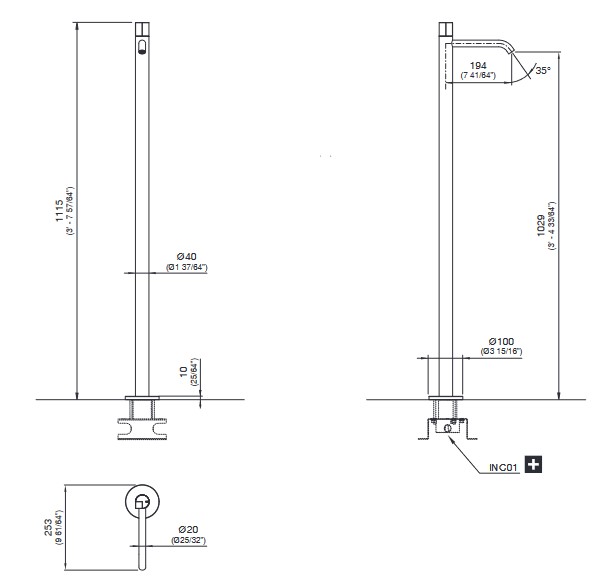 CEA Duet Bateria umywalkowa wolnostojąca element zewnętrzny Satin Stainless Steel DET08S