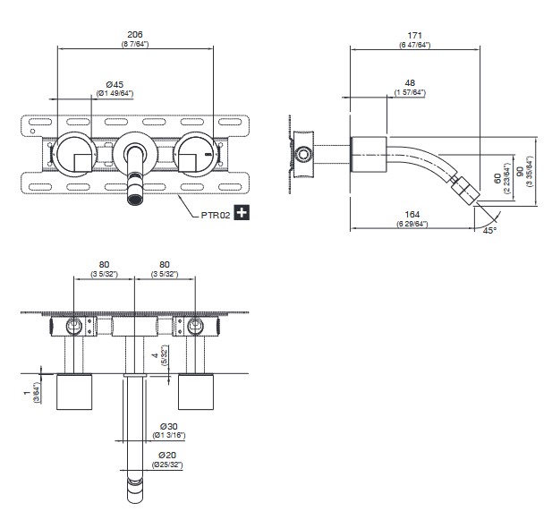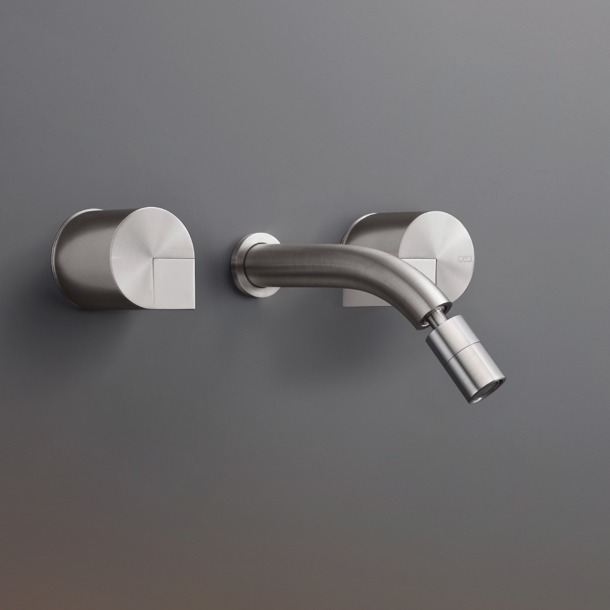 CEA Duet Bateria bidetowa ścienna z regulowaną wylewką element zewnętrzny Satin Stainless Steel DET27S