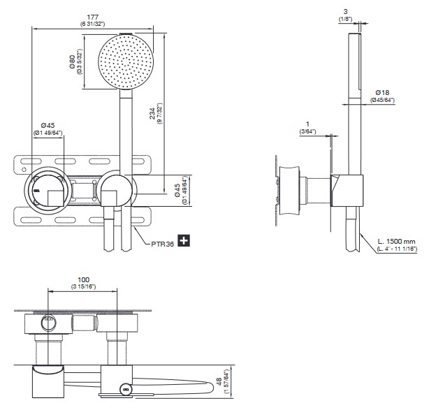 CEA Duet Bateria wannowa/prysznicowa ścienna ze słuchawką i wężem element zewnętrzny Satin Stainless Steel DET71HWS