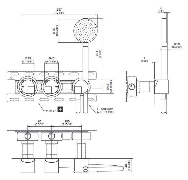 CEA Duet Bateria wannowa/prysznicowa ścienna ze słuchawką i wężem element zewnętrzny Satin Stainless Steel DET34HYS