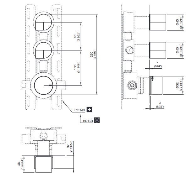 CEA Duet Bateria prysznicowa ścienna termostatyczna z 2 zaworami odcinającymi element zewnętrzny Satin Stainless Steel DET51S