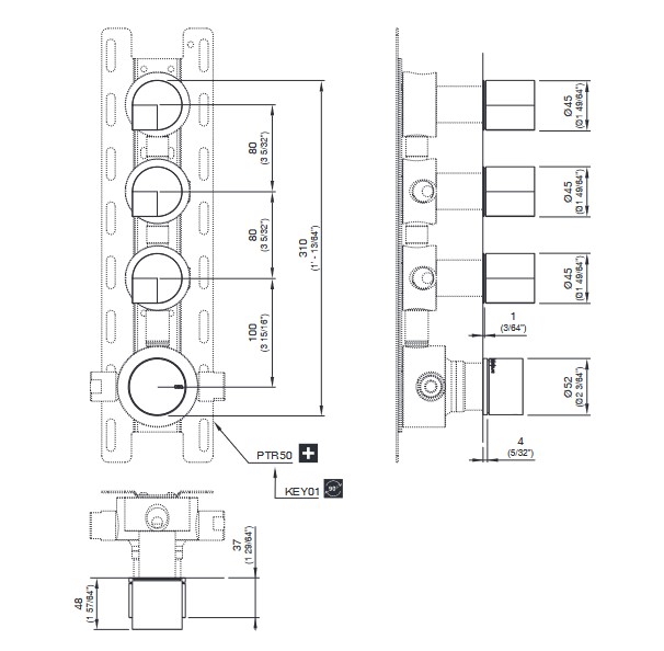 CEA Duet Bateria prysznicowa ścienna termostatyczna z 3 zaworami odcinającymi element zewnętrzny Satin Stainless Steel DET52S