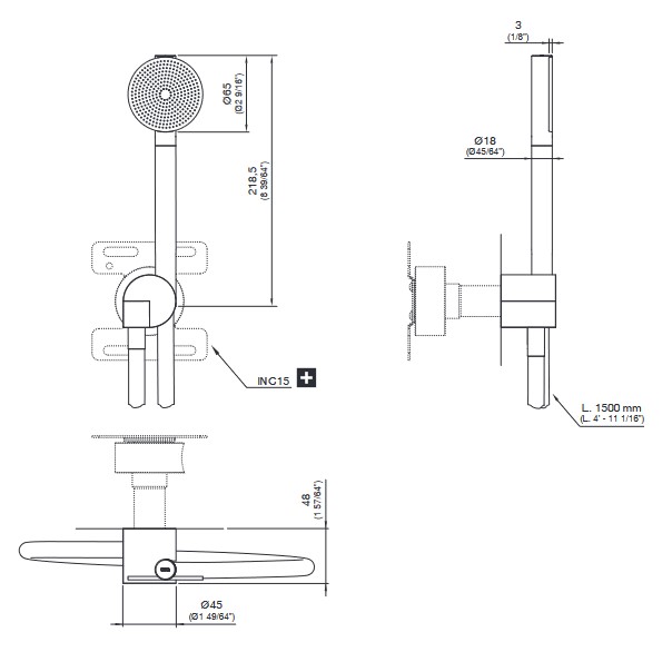 CEA Duet Słuchawka prysznicowa z uchwytem ściennym i przyłączem wody element zewnętrzny Satin Stainless Steel DET70YIS