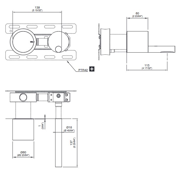 CEA Opus Bateria umywalkowa ścienna z wylewką 13,5 cm element zewnętrzny Satin Stainless Steel OPS04S