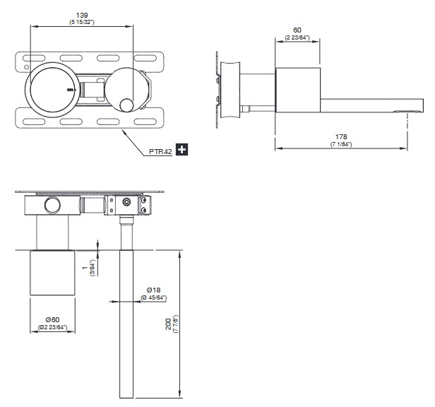 CEA Opus Bateria umywalkowa ścienna z wylewką 20 cm element zewnętrzny Satin Stainless Steel OPS05S