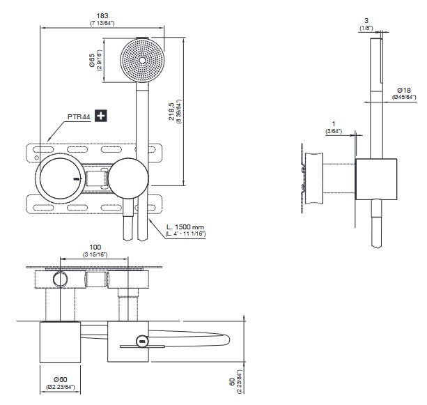 CEA Opus Bateria wannowa/prysznicowa ścienna ze słuchawką i wężem element zewnętrzny Satin Stainless Steel OPS61YWS