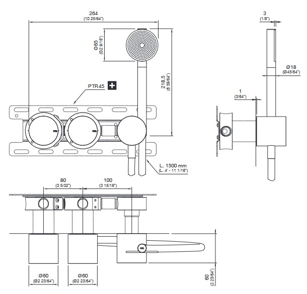 CEA Opus Bateria wannowa/prysznicowa ścienna ze słuchawką i wężem element zewnętrzny Satin Stainless Steel OPS24YWS