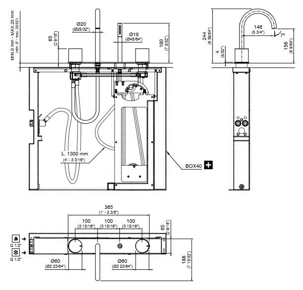 CEA Opus Bateria wannowa 4-otworowa na brzeg wanny z wylewką i słuchawką prysznicową element zewnętrzny Satin Stainless Steel OPS29S