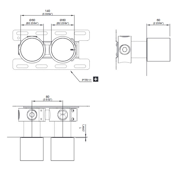 CEA Opus Zawór odcinający (para) ścienny mieszający element zewnętrzny Satin Stainless Steel OPS37S