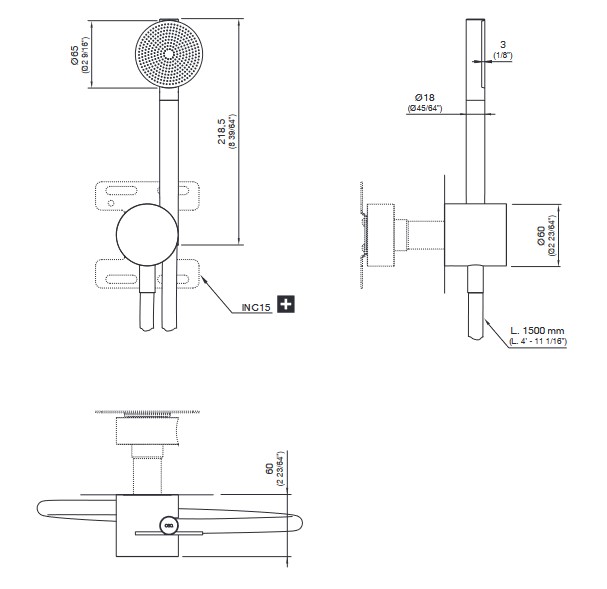 Główka prysznicowa: ∅6,5 cm