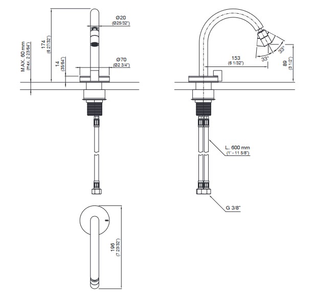CEA Giotto Bateria bidetowa jednootworowa z mieszaczem progresywnym Satin Stainless Steel GIO23S