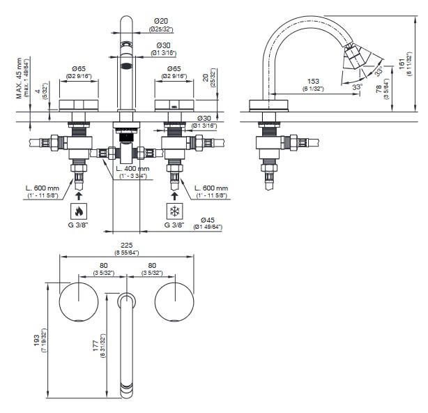 Wysięg wylewki: 15,3 cm