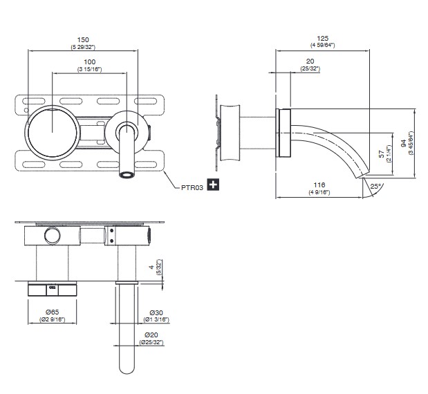 CEA Giotto Bateria umywalkowa ścienna z progresywnym mieszaczem element zewnętrzny Satin Stainless Steel GIO18S